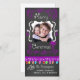 Feliz cartões com fotos de Natal com uma tela de fundo, muitos espirais roxos e texto que diz Feliz Natal, uma série de luzes coloridas em várias cores, ornamentos roxos pendurados, e áreas que você pode personalizar esses belos e brilhantes cartões com fotos de Natal com sua foto e seus nomes!
