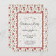 Fundo branco decorado com Cardinais vermelhos, poinsettia, bebidas. Com o texto: Festa de Natal escrita com uma escrita de estilo moderna e moderna, escrita à mão. Personalize e adicione os detalhes da sua festa.
