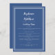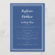 Simples, minimalista e elegante Menu Casamento apresenta um design contemporâneo com uma dupla borda de quadros em branco nítido em um plano de fundo azul clássico da tendência. A formulação tradicional proporciona sofisticação eterno mas moderna. Personalize o design do casamento com os detalhes do menu em letras brancas e roteiro. A parte traseira da placa corresponde a azul clássico sólido.