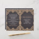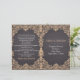 Moldura de folha de rolagem de pêssego de coral ventilado e cerimônia de casamento de quadro-negro e programa de festas com moldura de vintagem de coral em um quadro de cinza de carvão ou fundo de quadro-negro e seu texto. Uma abordagem moderna e contemporânea a um tema antigo. Este modelo é parte de um casamento, é totalmente personalizável e pode ser personalizado. Você terá que dobrá-lo no centro. Escolha apenas este tipo de valor de papel à medida que ele se dobra bem.