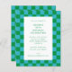 Convite de aniversário Geométrico do Quadro de Checagem Moderno e Bonito em Azul e Verde