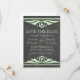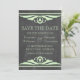 Quadro Deco Elegante e chic Salve o Anúncio de data com uma textura de quadro chalkboard em moda e um par de bordas giratórias verdes claras. Este adorável convite para a data é perfeito para anunciar o casamento temático da sua arte deco de 1920. Fácil de personalizar, simplesmente adicione seus detalhes de casamento. Clique em "Personalizar" para encontrar opções adicionais de personalização.