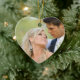 Enfeites de natal Coração-dados forma do quadro efeito preto. Os primeiros enfeites de natal do casal simples com a foto na inicial da parte dianteira e do monograma na parte traseira com flocos de neve brancos. Elke Clarke©. Para newlyweds e pais recentemente de casais como uma lembrança de seu dia do casamento. Os flocos de neve brancos e e a banda opaca junto com sua foto do casamento compo este design à moda. Para mais opções de edição, incluindo fazendo seu ajustado da foto, seleto "personalize-o" para o menu da edição.