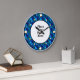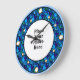 Quadro Floral Azul fotográfico redondo atrás das marcas de hora, Coloque sua foto aqui relógio personalizado de parede, sua foto aparecerá atrás da foto redonda para uma aparência verdadeiramente profissional - pontos de ouro branco para marcas de hora - 12,3,6 e 9 pontos maiores, em um padrão em forma de diamante, parece excelente em relógios redondos ou quadrados