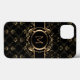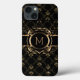 Estilo barroco de quadro floral elegante preto e ouro com monograma personalizável.