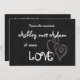 Quadro romântico do convite | do casamento do amor. Elke Clarke© bonito, convite do casamento do divertimento com fundo preto do quadro imprimiu o efeito da foto, o amor da palavra em uma pia batismal lunática branca e dois corações entrelaçados com tipografia da pia batismal da escrita do divertimento. Um design moderno do convite do casamento que seja inteiramente customizável. Outro colore disponível