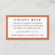 O tipo clássico e um quadro elegante do terracotta laranja-vermelho rico dão a este cartão em linha do pedido de RSVP a versatilidade para integrar com todos os tipos de convites, apenas ajustam a cor do fundo para combinar suas cores do evento. Não esqueça personalizar a resposta pelo texto do URL da data e do Web site deste cartão em linha da inserção de RSVP e dirigir seu convidado a seu Web site todo do casamento ao salvar alguns árvores e dinheiro no porte postal.