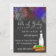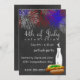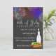 O estilo do quadro-negro convida com fogos de artifício vermelhos, brancos e azuis, um cachorro-quente e refrigerante em um quadro-negro.