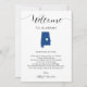 Este cartão moderno e elegante é a adição perfeita às suas bolsas de boas-vindas do hotel. Digite os eventos principais e uma nota personalizada para ajudar seus convidados a navegar no fim de semana. O tamanho permite que você insira todas as informações necessárias. Tudo neste cartão é editável. Para alterar cores ou mover elementos, clique em personalizar e, em seguida, em "editar usando a ferramenta design." Selecione o elemento que deseja editar e, em seguida, use as ferramentas para fazer as alterações.
