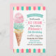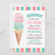Sorvete Watercolor Sorvete Scoops Glitter primeiro aniversario Convite