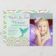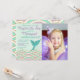 Está tudo melhor sob o mar! Este convite à sereia é o começo perfeito para criar um ambiente submarino com toda a vida marinha e tesouros que sua sereia especial encontrará. Ele apresenta um claro azul-esverdeado sob fundo de água com ondas oceânicas e uma sereia brilhante com acentos adicionais de brilho dourado. Claro que agradeço a garota que ama brilho! Adicione a foto do seu filho para lembranças queridas.