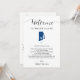 Este cartão moderno e elegante é a adição perfeita às suas bolsas de boas-vindas do hotel. Digite os eventos principais e uma nota personalizada para ajudar seus convidados a navegar no fim de semana. O tamanho permite que você insira todas as informações necessárias. Tudo neste cartão é editável. Para alterar cores ou mover elementos, clique em personalizar e, em seguida, em "editar usando a ferramenta design." Selecione o elemento que deseja editar e, em seguida, use as ferramentas para fazer as alterações.