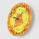 Relógio divertido da cozinha com cunha de limão e bolinhas de abstrato, rachaduras velhas e casamentos com cor de fundo.