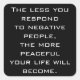 Autocolantes brancos e pretos personalizáveis exclusivos. Pense positivo! Citação da vida inspiracional e motivacional: Quanto menos você responder a pessoas negativas, mais pacífica sua vida se tornará.