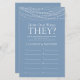 Esta linda folha de jogo de chuveiro de noiva "Quantos Anos Eles Tinham?" em azul empoeirado é simples e encantadora - perfeita para qualquer chuveiro. Este jogo divertido e fácil certamente trará muitas risadas para qualquer chuveiro de noiva! Peça que familiares e amigos lhe enviem fotos da noiva e do noivo em diferentes idades e as imprimam. Numere-as e coloque-as perto destas folhas de jogo. Simplesmente dê uma folha a cada convidado (não se esqueça das canetas) e deixe a competição começar! Você ficará surpreso com quantas pessoas realmente sabem as idades da noiva e do noivo. Em segundos você pode ver como sua folha de jogo ficará. Basta selecionar Personalizar este Modelo e digitar os nomes da noiva e do noivo.
