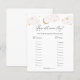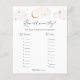 Placa de jogo de chá de fraldas com nuvens cor-de-rosa e estrelas douradas para combinar a Coleção da Lua no compro Adore Paper Co Zazzle. Uma maneira divertida de interagir com os convidados do chá para adivinhar a idade dos futuros pais nas fotos.