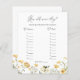 Cartão de caça com chá de fraldas, com flores silvestres amarelas de cor d'água e verde, que corresponde à Coleção Delicada de Flores Selvagens do compro Adore Paper Co Zazzle. Uma maneira divertida de interagir com os convidados do chá para adivinhar a idade dos futuros pais nas fotos.