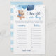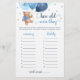 Adquira este cartão editável e desfrute de alta qualidade Quantos anos o jogo de mamãe e pai tinha para o seu evento! Atividades de chá de fraldas! Jogo azul e prata.