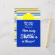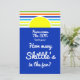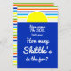Chá de fraldas adivinha quantos no sinal de pedestal do jogo Jar. Design de Correspondência para Aqui Vem A Coleção De Chás de fraldas Son Summer Stripes. Um design moderno, divertido e colorido para um chá de fraldas de verão otimizado, com um Sol Ascensão. Fonte alegre e divertida para um texto personalizável. A design faz parte da Coleção de Stripes de Verão, que inclui convites para duches de bebês, cafeteiras de fralda e caixas de biblioteca de livros, material de festa, decorações, presentes e muito mais.