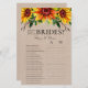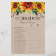 Esta folha de jogo Rustic Sunflowers How Well Do You Know The Brides? (Quão bem você conhece as noivas?) para chá de panela LGBTQ trará muita diversão e risadas para o seu chá de noiva! A página é elegante e encantadora. Seu belo design com girassóis multicoloridos e delicados tufos de folhagem natural em estilo contemporâneo de aquarela é perfeito para qualquer casamento floral, rústico, romântico, vintage ou ao ar livre. Para personalizar este jogo, basta selecionar Personalizar este modelo e digitar os nomes e iniciais das noivas.