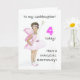 Um 4º Cartão de Aniversário para uma afilhada, com uma fada negra num vestido cor-de-rosa, a partir de uma ilustração com aquarelas de Judy Adamson. Sinta-se à vontade para personalizar a mensagem de dentro e entre em contato comigo através da minha loja se você quiser mudanças no cobrir frontal.