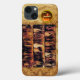 Design elegante e clássico com antigos resgates envelhecidos, efeitos de pergaminho marrom e pedra gema laranja amarela brilhante 3D.Pintura aquosa, obra-prima do pintor francês T.Gericault. Design de monograma clássico facilmente personalizável com suas iniciais.