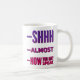 Esta caneca de café engraçada diz "Shh Quase Now You May Speak" de ambos os lados.