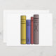Seja você mesmo um rato de biblioteca ou conheça alguém que gosta de ler isso é o design perfeito. Este design apresenta quatro livros que se erguem ao lado uns dos outros com os espinhos dos livros a serem exibidos. Cada livro é de altura e cor diferentes. Este design de quatro livros parece excelente nesses convites