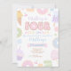 Pronto para celebrar um aniversário com o tema mais doce do arco-íris? Nosso convite de aniversário de quatro anos foi pedido por um cliente, e estamos tão felizes que ela pediu! Apresentando uma mistura de sobremesas pastéis coloridas e fontes retrô e script, este brilhante convite de aniversário é a mistura perfeita de diversão e bonito.
