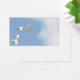 Quatro pombas de voo que dirigem em um cartão de visita da nuvem. Também útil para casamentos, etc. nupcial