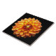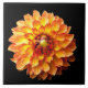 Azulejo cerâmico com tema de jardim, apresentando a ferrura e dramática flor de Quatro Queens Dahlia sobre fundo preto.