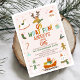 Que primeiro aniversario de Natal divertido Convite Fúcil Festa de Natal Primeiro convite de aniversário com renas, Papai Noel, trenó, boneco de neve e muito mais em fundo rosa-claro. Este oh que primeiro convite de aniversário divertido também apresenta um título multicolorido e é ideal para o primeiro aniversário de uma menina.