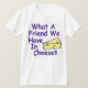 Oh, que amigo nós temos nos queijos! Esta camisa pica delicadamente o divertimento na frase, "que amigo nós temos em Jesus," tomando a maneira que o nome de Jesus é pronunciado e fazendo o literal. Nosso t-shirt do humor religioso, que igualmente comemora sincera nosso amigo o queijo, é feito em América.