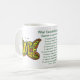 A caneca apresenta uma pintura do poema "O que o Cancer não pode fazer" com a palavra de esperança borboleta arte. As palavras do poema são "O que o Cancer não pode fazer, o Cancer é tão limitado... Não pode aleijar o amor. Não pode destruir a esperança. Não pode corroer a fé. Não pode destruir a paz. Não pode matar amizade. Não pode suprimir memórias. Não pode silenciar a coragem. Não pode invadir a alma. Não pode roubar a vida eterna. Não pode conquistar o espírito. -Autor Desconhecido" Você pode personalizar esta caneca de café poema de cancer com suas opções personalizadas para fazer presentes especiais de suporte a canceres. Royalties da venda da caneca de café apoiam os sem fins lucrativos, DonnaBellasAngels.org. Sua missão é fornecer arte inspiradora ao público para o bem-estar mental. Seu lema é "Medicina cura o corpo, arte cura a alma." Saiba mais em www.DonnaBellasAngels.org.