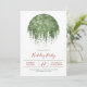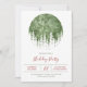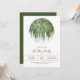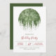 Que Divertido! Convite para festas de Natal com um globo de neve com árvores de aquarelas.