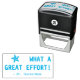 Este design de carimbo divertido apresenta a mensagem positiva "QUE ESFORÇO DE EXCELENTE!" e o nome de um professor ou educador personalizado. Ele também apresenta uma forma decorativa de estrela. Ele poderia ser usado por um professor de escola, educador ou orientador ao formando o trabalho estudantil, para indicar que um aluno fez um trabalho excepcional.