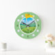Nunca perca um tempo com o relógio de telhado de golfe. O centro do relógio tem uma imagem de um campo de golfe, com uma bandeira e uma bola de golfe. Os doze, três seis e nove são números, enquanto os números restantes são substituídos por bolas de golfe. Você pode manter o texto existente ou personalizá-lo. Você também pode alterar a cor de fundo.