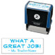 Este design de carimbo divertido apresenta a mensagem motivadora "QUE TRABALHO EXCELENTE!" e o nome de um professor ou educador personalizado. Ele poderia ser usado por um professor, educador, ou tutor ao marcar tarefas, para reconhecer que o aluno fez um trabalho de excelente.