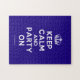Com base no original Keep Calm e... poster este creme e este Quebra-cabeça azul Keep Calm and Party On apresenta uma fonte personalizada que corresponde ao original.