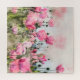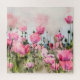 Este design apresenta uma pintura aquarela de flores cor-de-rosa em um campo.