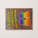 Esta excitante e vibrante arte urbana de rua e grafite inspirada no quebra-cabeça de aniversário apresenta um grande número "17", tendo um padrão colorido inspirado no espectro do arco-íris. Também apresenta a mensagem "Feliz 17.º aniversário", e um nome personalizado. O fundo tem um padrão de parede de tijolos. Um vibrante e personalizável quebra-cabeça de aniversário como este pode ser usado para reconhecer o décimo sétimo aniversário de alguém. [~Z0000545]
