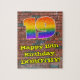 Esta vibrante e empolgante arte urbana de rua e grafite de quebra-cabeça de design de aniversário tematizado apresenta um grande número "19" com um padrão colorido inspirado no espectro do arco-íris, juntamente com a mensagem "Feliz 19º aniversário", e um nome personalizado. O fundo apresenta um padrão de parede de tijolos. Uma quebra-cabeça de aniversário colorida e personalizável como esta poderia ser dada para celebrar o 19° aniversário de alguém. [~Z0000545]