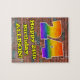 Esta excitante e divertida arte urbana de rua e o design de quebra-cabeça de grafite de de aniversário, tema de aniversário, apresenta um grande número de "24", tendo um padrão colorido inspirado no espectro do arco-íris. Também apresenta a mensagem "Feliz 24.º aniversário", e um nome personalizado. O fundo tem um padrão de parede de tijolos. Uma quebra-cabeça de aniversário colorida e personalizada como esta poderia ser dada em comemoração do vigésimo quarto aniversário de alguém. [~Z0000545]