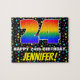 This eye-catching and colorful birthday jigsaw puzzle design features a large number “24” having a multicolored rainbow spectrum inspired gradient pattern. It also features the message “HAPPY 24th BIRTHDAY,”, and a personalized recipient name. The background features a cheerful, multicolored star field pattern. A bold, personalized birthday puzzle like this might be a fun way to deliver a birthday greeting message to somebody who is celebrating their twenty-fourth birthday. [~Z0000607]