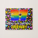 Este design de quebra-cabeça de jardim vívido e vibrante aniversário, chamado jigserra, apresenta um grande número "37" com um padrão de gradação inspirado no espectro multicolorido do arco-íris, juntamente com a mensagem "37º ANIVERSÁRIO", e um nome de destinatário personalizado. O fundo apresenta um padrão alegre de corações amorosos com várias cores e tamanhos. Um quebra-cabeça de aniversário ousado e editável como este poderia ser usado para celebrar o trinta e sétimo aniversário de alguém. [~Z0000611]
