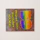 Este vibrante e empolgante grafite urbano e arte de rua inspiraram o quebra-cabeça design de aniversário que apresenta um grande número "59" com um padrão colorido inspirado no espectro do arco-íris, juntamente com a mensagem "Feliz 59º aniversário", e um nome personalizado. O fundo apresenta um padrão de parede de tijolos. Uma quebra-cabeça de aniversário colorida e personalizável como esta poderia ser dada para celebrar o cinquenta e nono aniversário de alguém. [~Z0000545]
