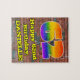 Esta divertida e vibrante arte urbana de rua e design de quebra-cabeça de grafite de de aniversário, tema de aniversário, apresenta um grande número "62", tendo um padrão colorido inspirado no espectro do arco-íris. Também apresenta a mensagem "Feliz 62º Aniversário," e um nome editável. O fundo tem um padrão de parede de tijolos. Um vibrante e personalizado quebra-cabeça de aniversário como este pode ser usado para reconhecer o sexagésimo segundo aniversário de alguém. [~Z0000545]