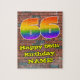 Esta divertida e vibrante arte urbana de rua e grafite inspirada no quebra-cabeça de aniversário apresenta um grande número "66", tendo um padrão colorido inspirado no espectro do arco-íris. Também apresenta a mensagem "Feliz 66º aniversário", e um nome editável. O fundo apresenta um padrão de parede de tijolos. Um vibrante e personalizado quebra-cabeça de aniversário como este pode ser uma maneira divertida de entregar uma mensagem de saudação de aniversário a alguém que comemora seu sexagésimo sexto aniversário. [~Z0000545]