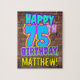 Este design de aniversário divertido apresenta a mensagem "FELIZ 75º ANIVERSÁRIO", tendo uma aparência colorida, vibrante, de arte urbana e grafite inspirada, junto com um nome de destinatário editável. O plano de fundo apresenta um padrão inspirado pela aparência de uma parede de tijolos. Um quebra-cabeça de aniversário divertido e personalizado como este pode ser dado em comemoração do setenta e cinco anos de alguém. [~Z0000532]