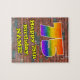 Esta excitante e vibrante arte urbana de rua e grafite inspirada no quebra-cabeça de aniversário apresenta um grande número de "75", tendo um padrão colorido inspirado no espectro do arco-íris. Também apresenta a mensagem "Feliz 75.º aniversário", e um nome personalizado. O fundo apresenta um padrão de parede de tijolos. Um quebra-cabeça de aniversário colorido e personalizado como este pode ser uma maneira divertida de enviar uma mensagem de saudação de aniversário a alguém que está celebrando seu setenta e cinco anos. [~Z0000545]